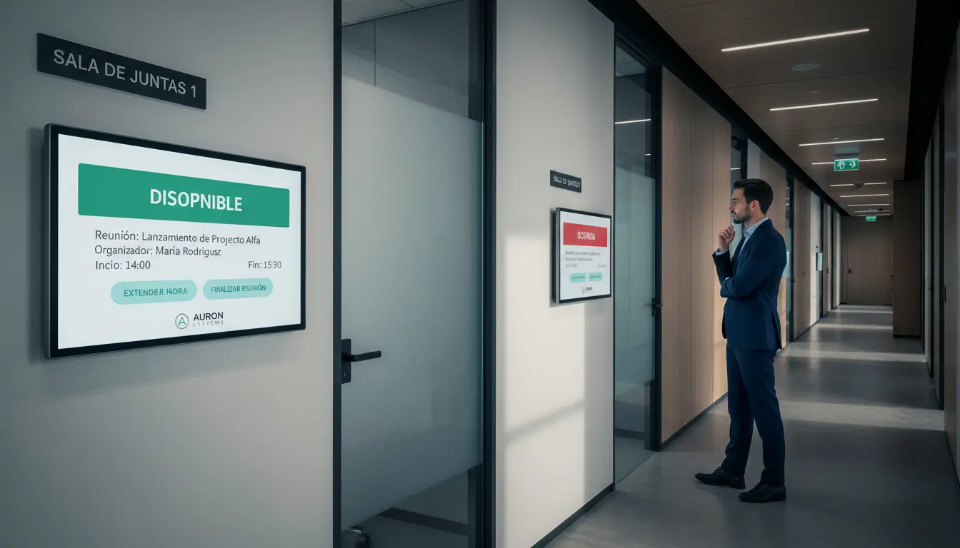 Displays en recepción, áreas comunes y salas de juntas para difundir métricas, noticias internas o campañas de cultura organizacional.