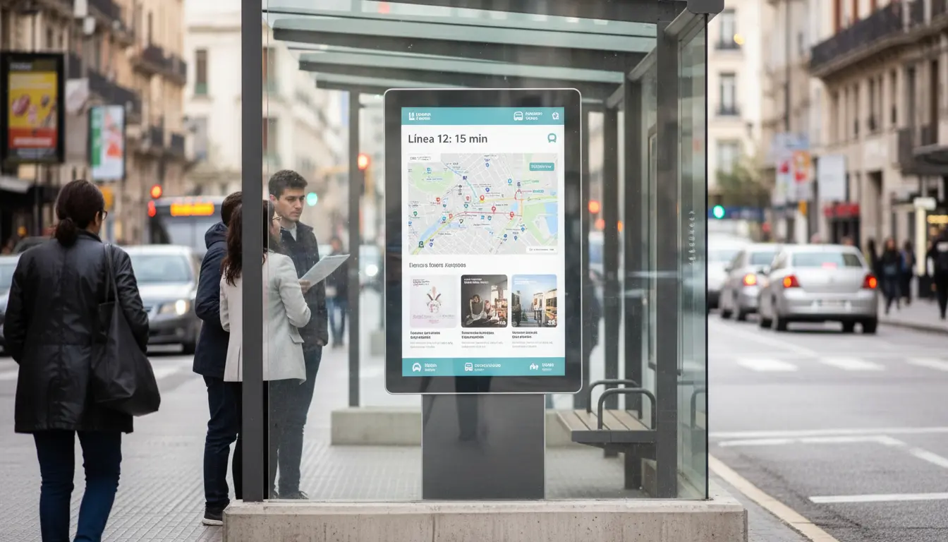 Integradas con analítica de audiencia, convierten los trayectos en espacios inteligentes de comunicación.