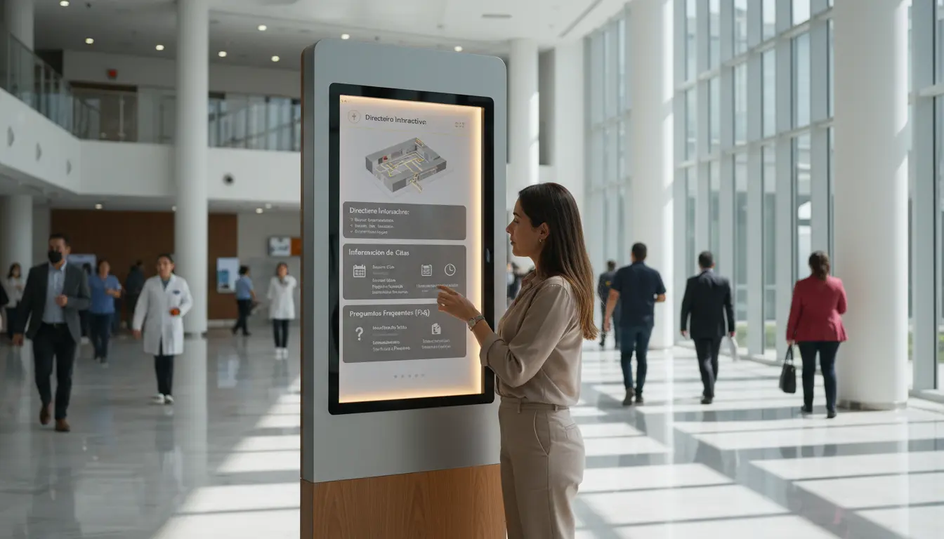 Soluciones digitales para salas de espera, áreas de atención y pasillos informativos.
